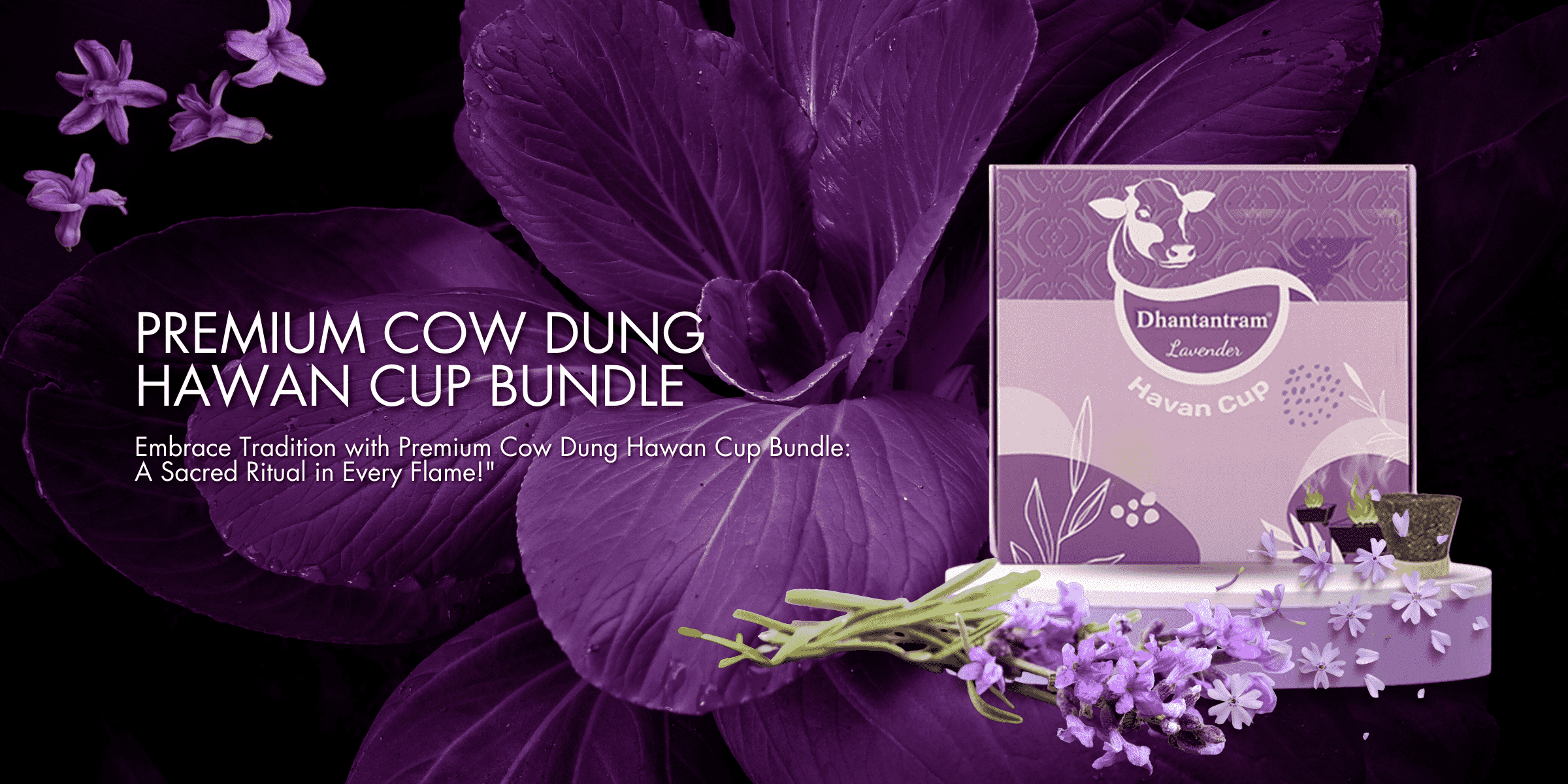 Premium Cow Dung Lavender Hawan Cup (15 pieces supply with stand)